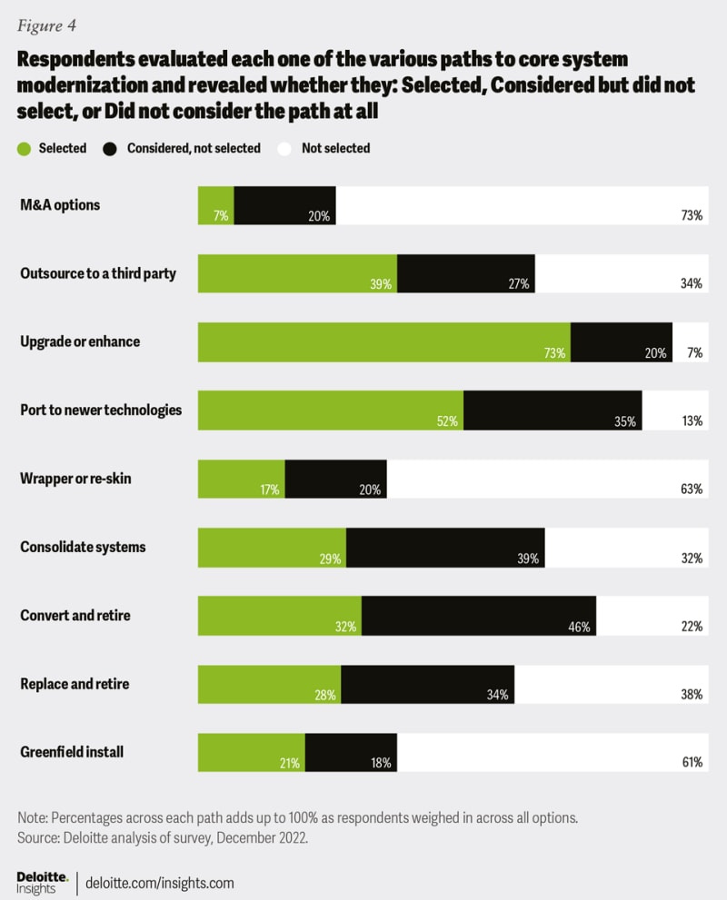 A significant portion of the costs and risks associated with digital transformation in the financial services industry pertains to the replacement of legacy systems. A proactive business executive often finds that replacing these systems with microservices may be more expensive and involve more internal hand-offs, especially when the expected business benefits are not significantly greater. In such cases, they may opt against the transformation project. However, when the benefits clearly outweigh the costs, the crucial decision lies in choosing the type of replacement: whether to build it in-house or acquire it from a vendor.