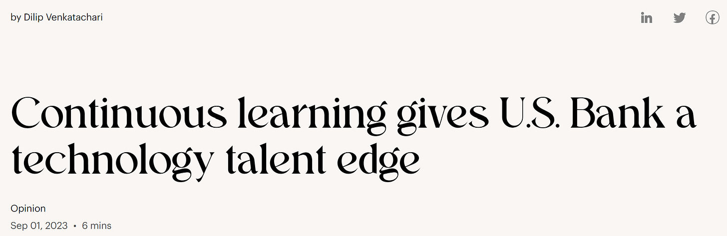 “Since we’ve started this continuous learning journey with our teams, we’re seeing higher employee engagement, an increase in our team’s reported skills and certifications, and a stronger technology-to-business connection across U.S. Bank.”